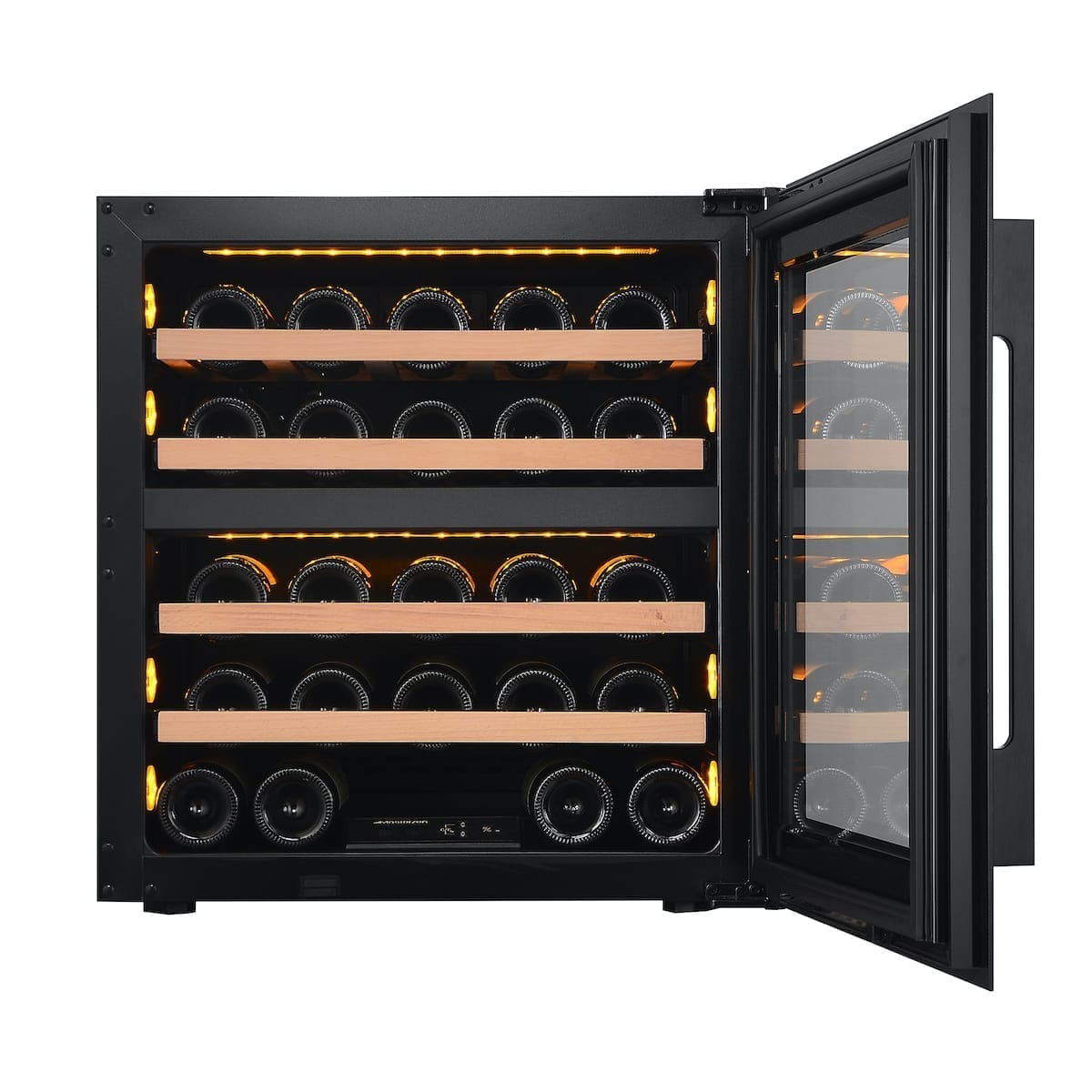 Οι συντηρητές κρασιών Masterzen σειρά XPR W σχεδιάστηκαν από λάτρεις του κρασιού με πολυετή εμπειρία και απευθύνονται τόσο στους λάτρεις του κρασιού όσο και τους επαγγελματίες. Ο συνδυασμός της πόρτας, Full Glass Black Door, και του τζαμιού, με 2 στρώματα LOW-E με φίλτρα για προστασία από UV & Infrared ακτινοβολίες, σχεδιασμού και εργονομίας κελάρι/συντηρητή για τη συλλογή σας. Προσεγμένοι σχεδιαστικά μέχρι την τελευταία τους λεπτομέρεια. Όπως αξίζει πραγματικά στην συλλογή των κρασιών σας, ώστε να διατηρούνται σε ιδανικές συνθήκες υγρασίας και θερμοκρασίας, προστατευμένα από UV & Infrared ακτίνες για να παλαιώσουν αλλά και έτοιμα να σερβιριστούν μοναδικά, καθώς διαθέτουν δύο ανεξάρτητες ρυθμιζόμενες ζώνες θερμοκρασίας. Μπορούν να λειτουργήσουν και σαν Ψυγεία Κρασιών, Βιτρίνες Κρασιών.