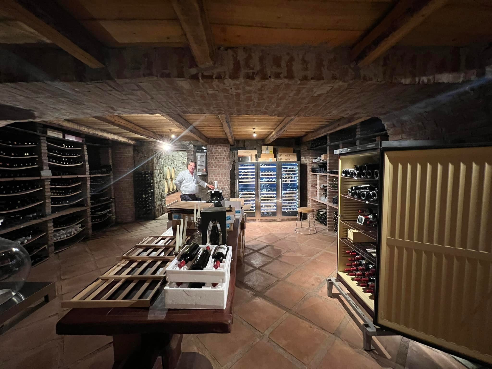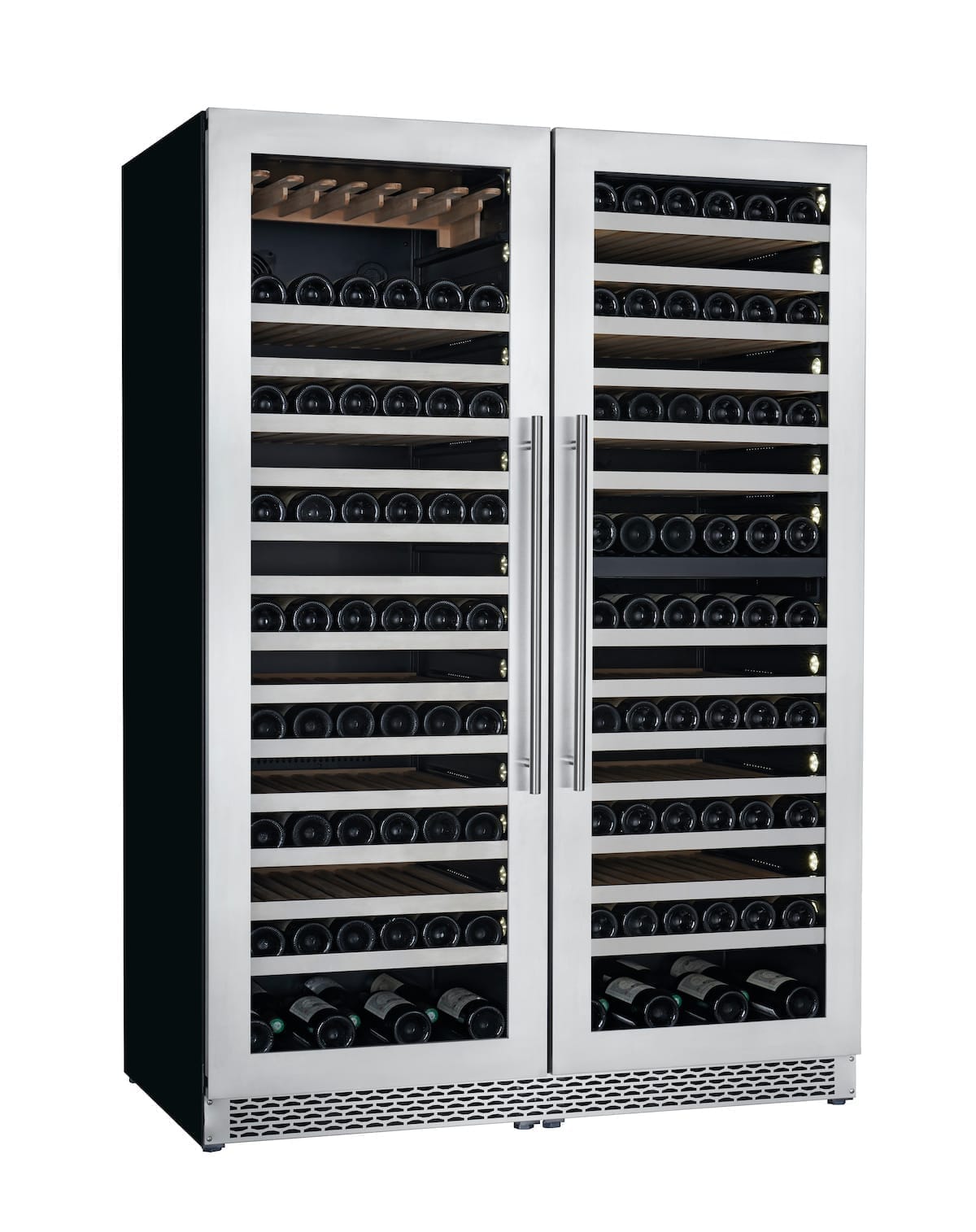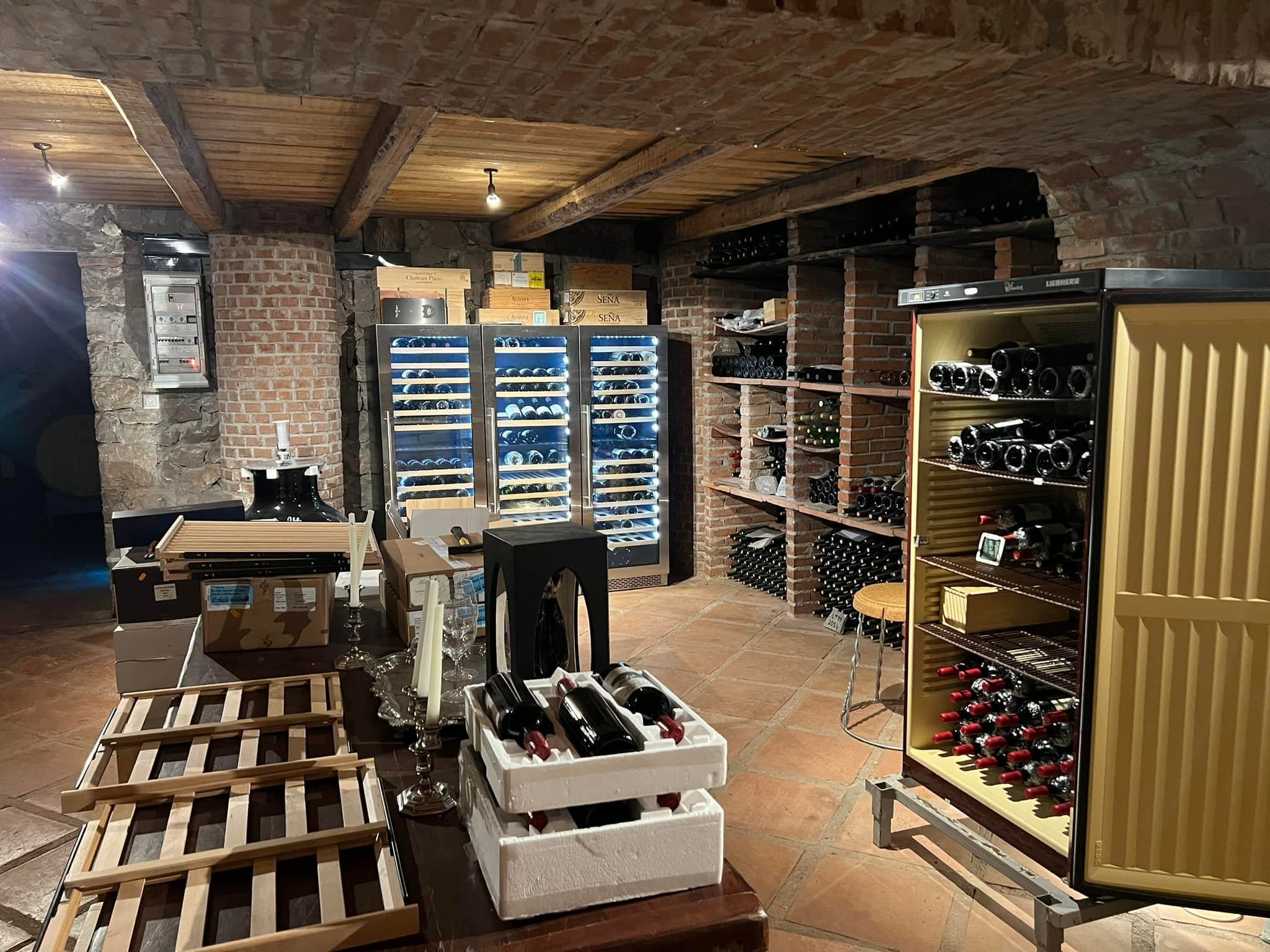 - 28 Ξύλινα τηλεσκοπικά ράφια (18 ράφια για μπουκάλια τύπου Bordeaux και 10 ράφια για μπουκάλια τύπου Βουργουνδίας). Πλήρως συρόμενα προς τα έξω ράφια με τηλεσκοπικές ράγες